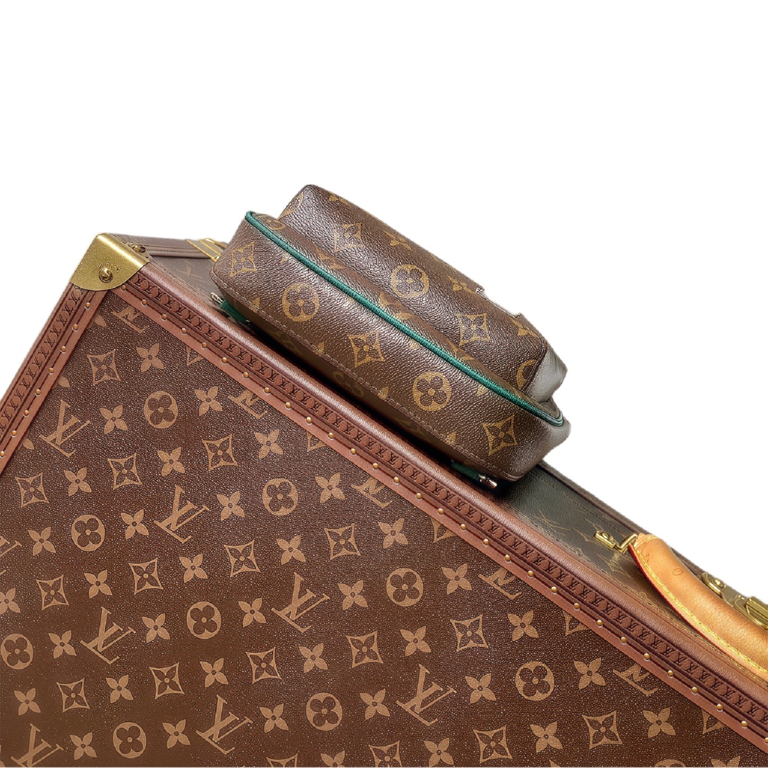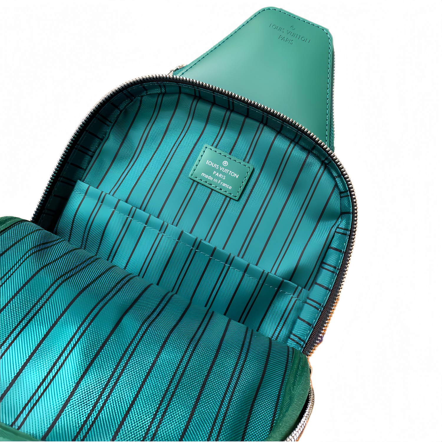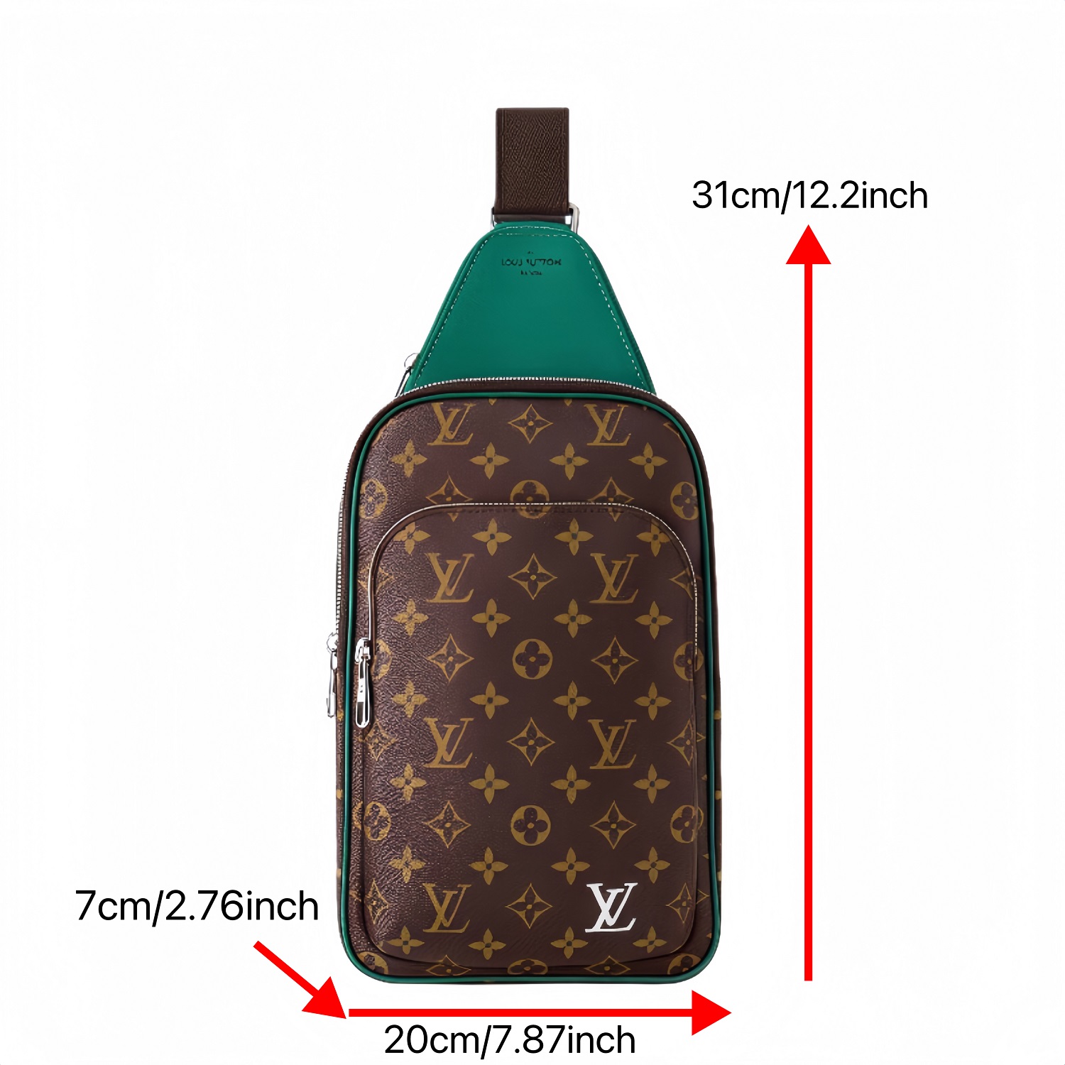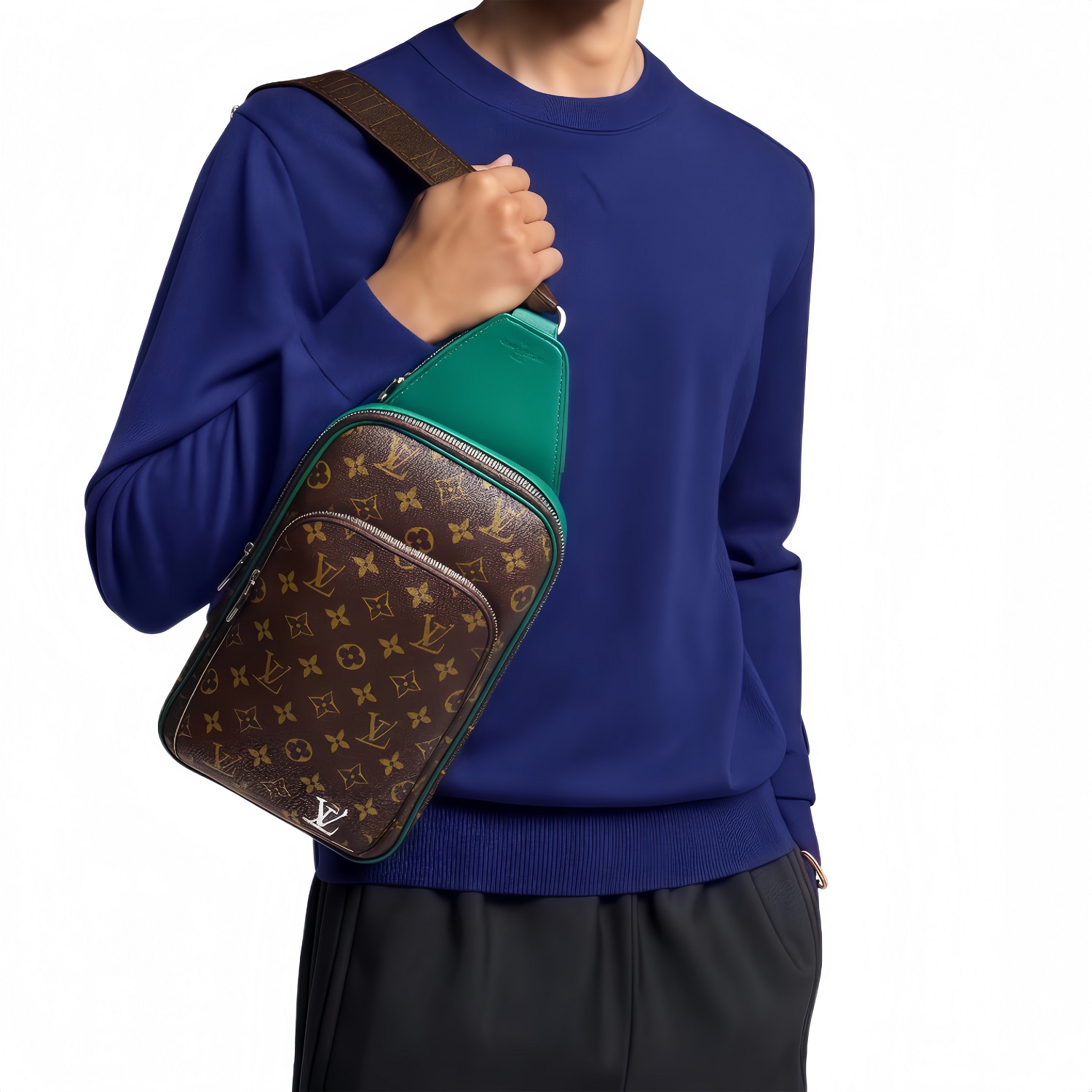 LOUIS VUITTON Avenue Sling Bag with Monogram Zip Closure, Leather Accents, Unisex Green and Brown Crossbody Bag